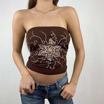 025 Nueva Moda Casual Posicionamiento Impreso Pecho Envuelto Top