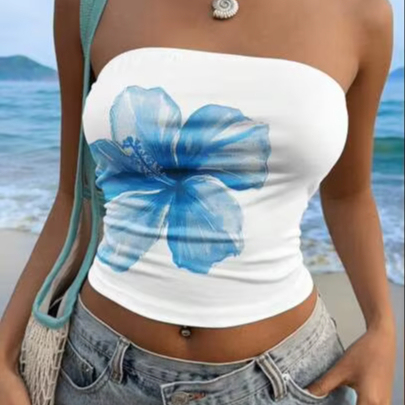 Primavera ed estate nuova moda donna gilet Sexy senza spalline stampato Top corto