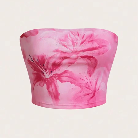 Primavera e Verão Nova Moda Feminina Sexy Strapless Vest Impresso Top Curto